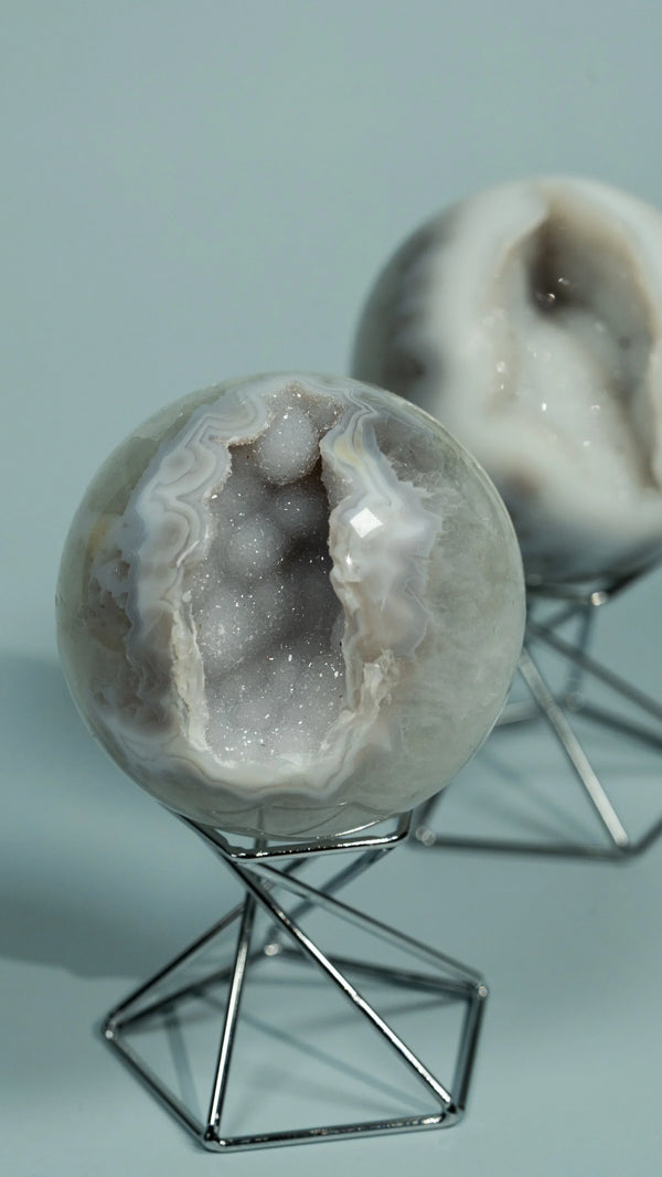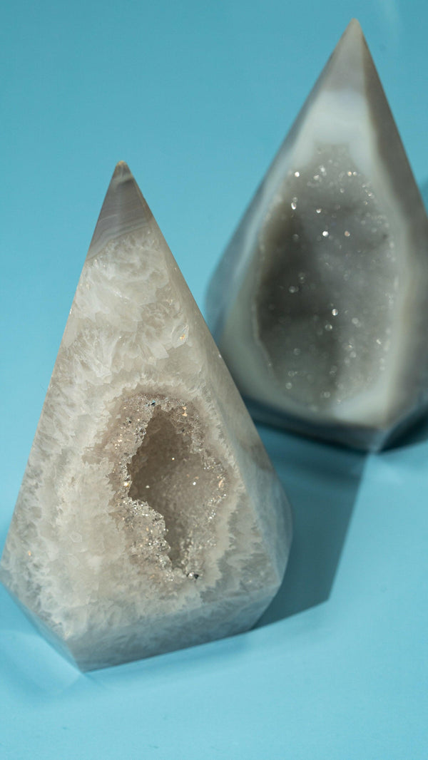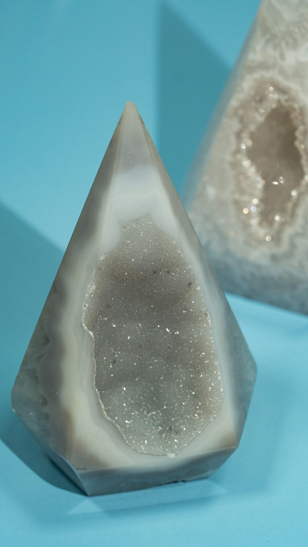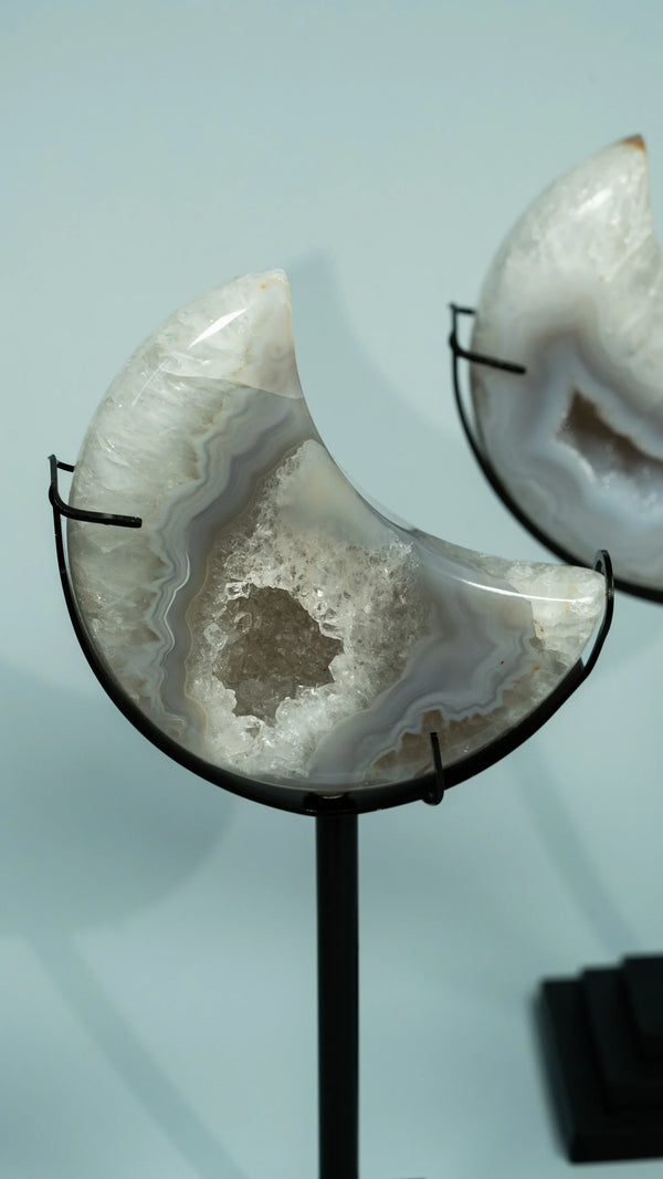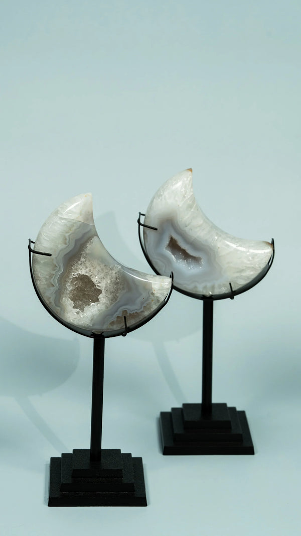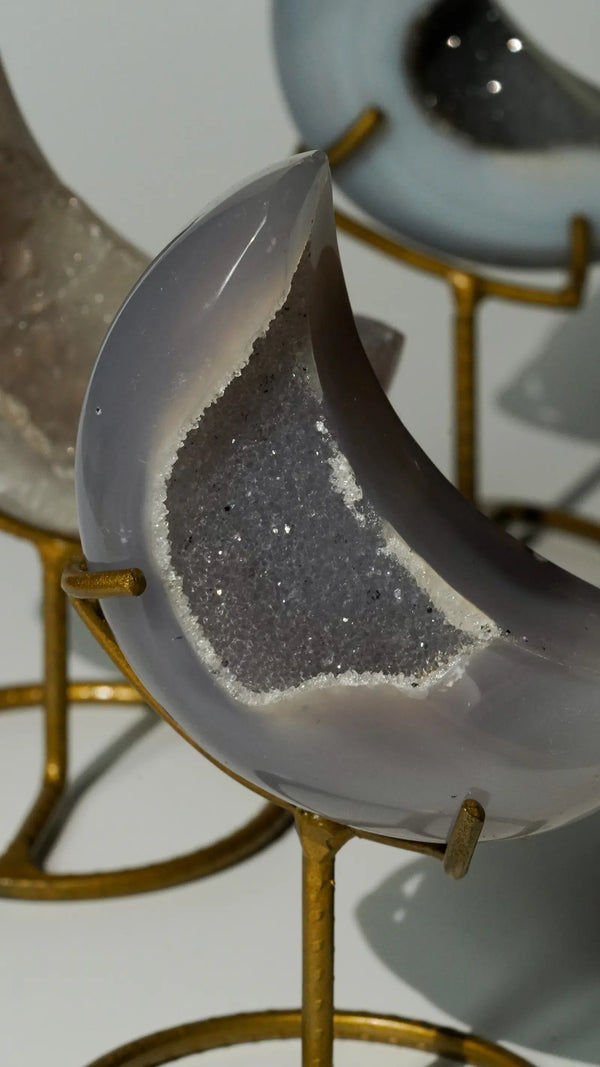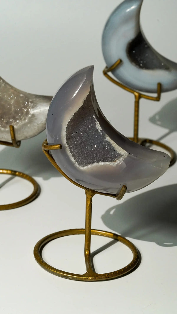 Achat ist der Stein der Erdung und Stärke – mit seinen natürlichen Bänderungen und Farben ein echter Blickfang. Bei ELDR findest du handverlesene Achat-Kugeln, Monde und Spitzen. Ethisch bezogen und liebevoll kuratiert.