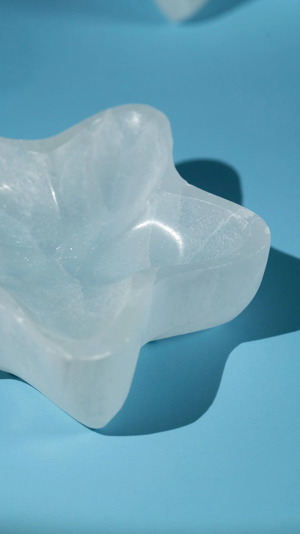 Selenit ist der Stein des Lichts und der Reinigung – strahlend weiß, zart und energetisch klärend. Bei ELDR findest du handverlesene Selenit-Schalen in Herz- und Sternform. Ethisch bezogen und liebevoll kuratiert.